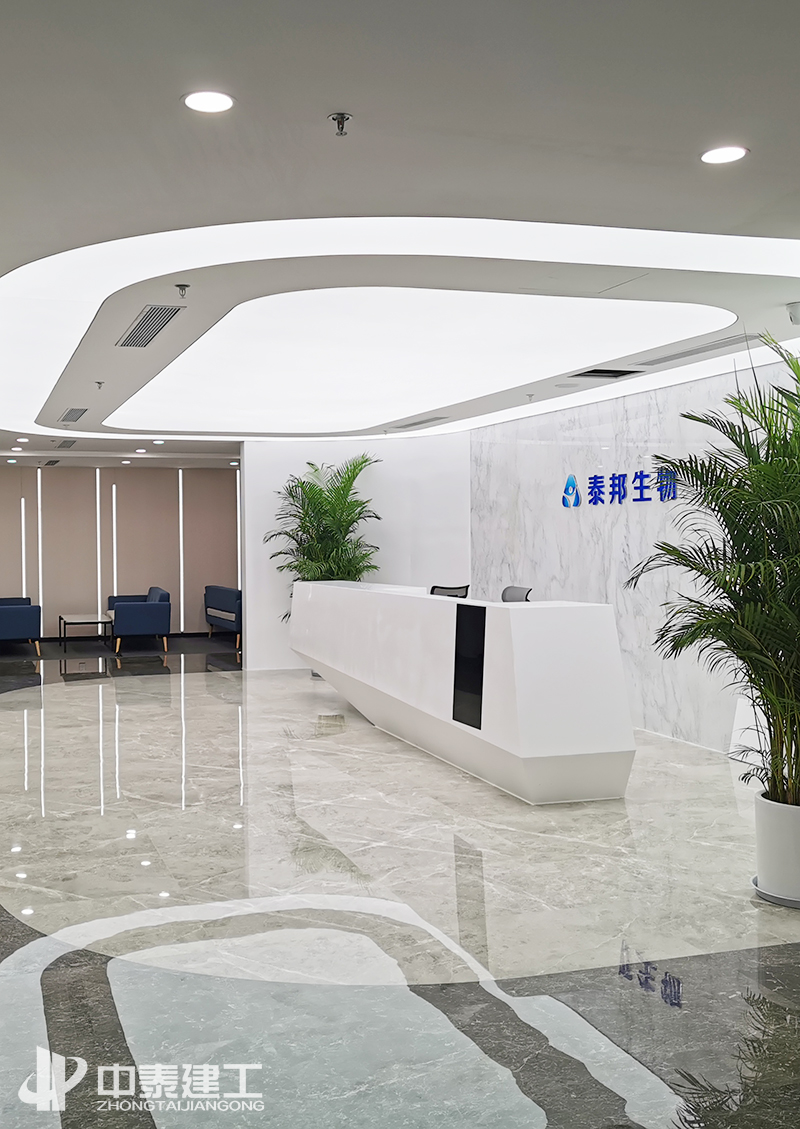 泰邦生物辦公室裝修工程項目位于北京市朝陽區朝陽公園路19號佳隆國際大廈,面積1400㎡,包括辦公空間和接待空間兩部分。整體空間的定位以 現代、商務、生態、品質 為基本思路來營造整體空間氛圍。