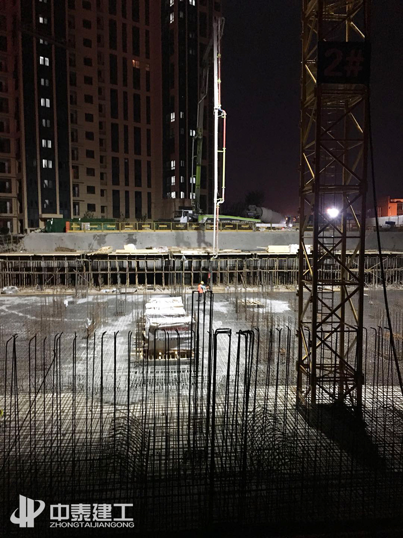 經過63個小時不間斷澆筑,中泰建工承建的臨沂·榮盛華府房屋建筑工程項目全體參建人員以積極認真的工作態度、飽滿的工作熱情,順利完成了主樓筏板大體積混凝土澆筑任務,實現一次連續無停頓澆筑混凝土3100余方。