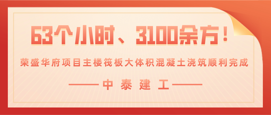 63個小時、3100余方!中泰建工承建的臨沂·榮盛華府房屋建筑工程項目再傳捷報——主樓筏板大體積混凝土澆筑順利完成
